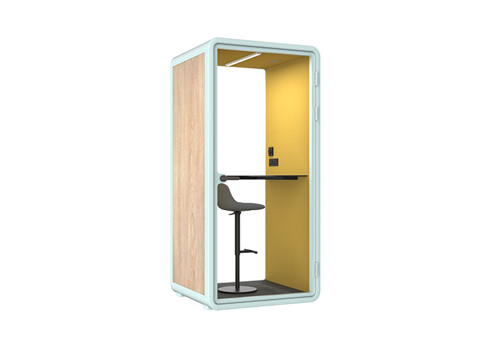 La cabine insonorisée offre un espace privé et confortable pour le travail créatif.et verre trempé - matériaux également utilisés dans les trains à grande vitesse.