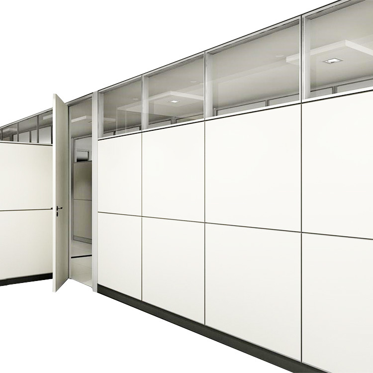 Parement mural en verre à moitié en haut parement mural de bureau en bois en bas