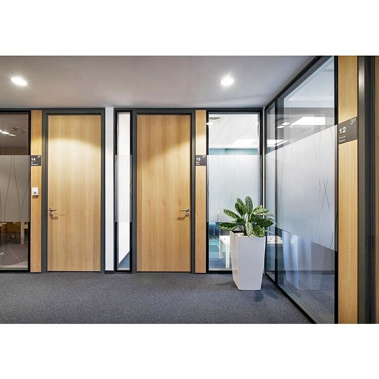 Nous avons différents types avec des panneaux simples / doubles vitrés ou solides, le verre peut être du verre trempé clair, du verre glacé, du verre peint, du verre intelligent, etc. Les matériaux solides peuvent être le stratifié de mélamine, HPL,Disques en aluminiumUne plaque d'acier.