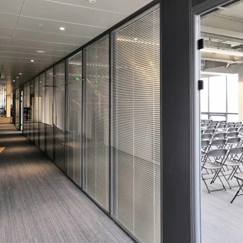 5) Contrôle acoustique supérieur: les cloisons peuvent être conçues pour une excellente étanchéité acoustique, en utilisant du verre stratifié, du double vitrage, des noyaux isolants et des joints acoustiques pour atteindre un STC élevé.